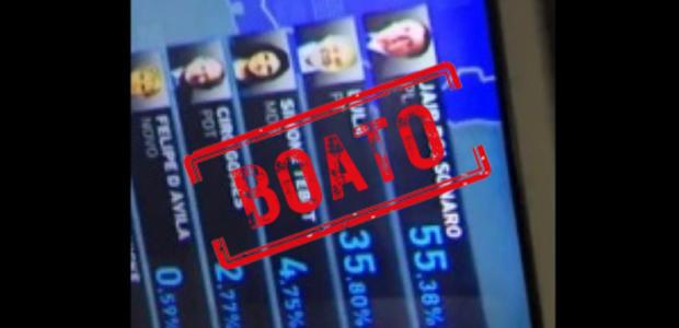 É falsa a informação de que o Tribunal Superior Eleitoral (TSE) teria cometido uma falha ao mostrar a vitória de um dos candidatos à Presidência da República com 55% dos votos válidos.